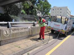 Pressure washing of reverse Graffiti from concrete by G.R.S