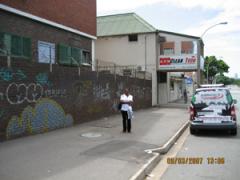 Graffiti Tags removed from brown face brick wall by G.R.S