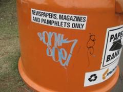 Graffiti Tags removed from plastic recycle bin by G.R.S