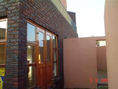 Dirt and mortar left by builders on brick, cleaned from new house before occupation.