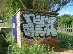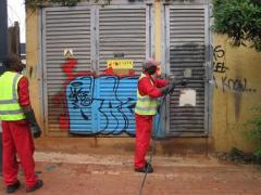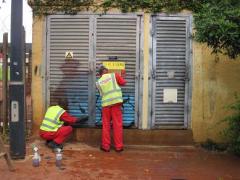 Graffiti Tags being removed from substation by G.R.S