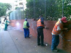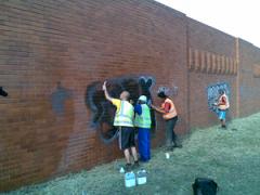 Graffiti removal teams cleaning Graffiti from face brick