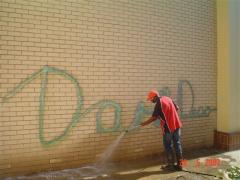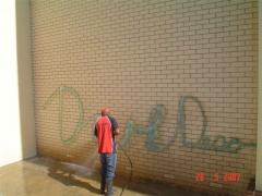 Graffiti Tags being removed from face brick by G.R.S