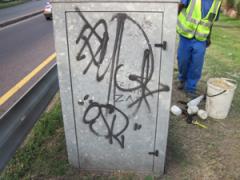 Graffiti removed from galvanized steel Telecom box by G.R.S