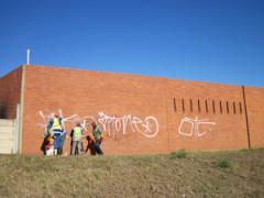 Graffiti Tags being removed from a face brick wall by G.R.S