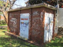 Graffiti Tags removed from substation face brick building by G.R.S
