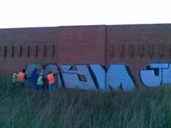Graffiti being removed by G.R.S