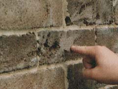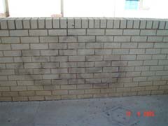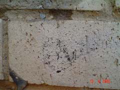 (The illustration on the left is a side view of Graffiti penetration on a porous face brick.) |